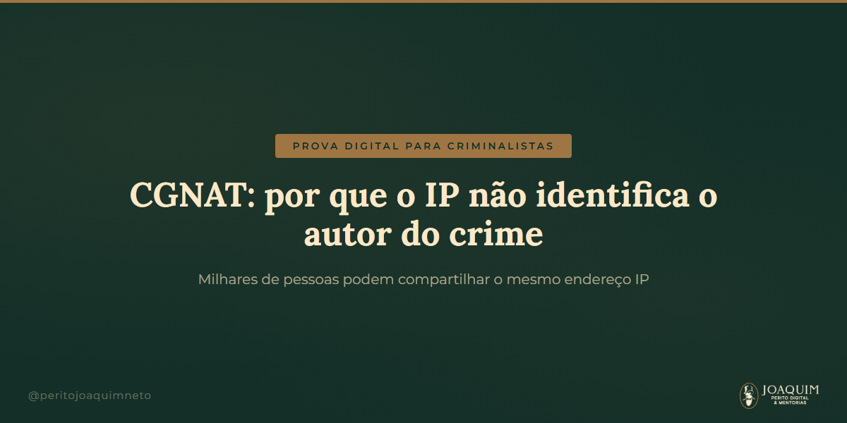 Você recebe a denúncia e lá está: o IP tal foi identificado na prática do crime, a operadora informou que pertence ao seu cliente, portanto ele é o autor. Parece lógico. Mas se você não entende o que é CGNAT e como funciona a identificação por IP no Brasil, vai aceitar como prova algo que não prova absolutamente nada sobre autoria.